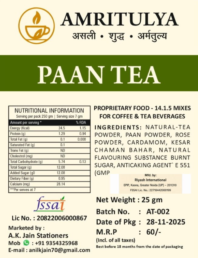 Perfect for those who enjoy aromatic, slightly sweet and refreshing tea with a paan-inspired twist.