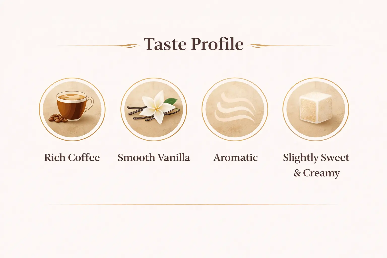 ✔ Rich coffee blended with smooth vanilla flavour